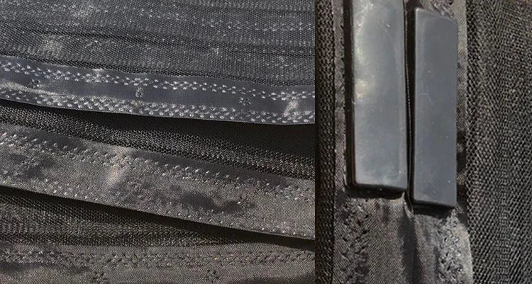 1. There are 7 pairs magnetic buckles and 6 pairs magnetic strips at the seal of mesh.