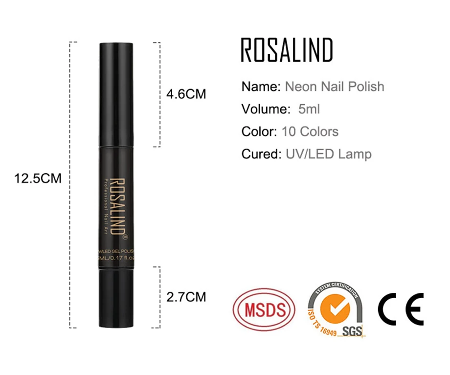 Item Specifications: Brand Name: ROSALIND Name: Neon Nail Gel Pen Volume: 5 ml Color: 10 Colors Cured: UV/LED Lamp